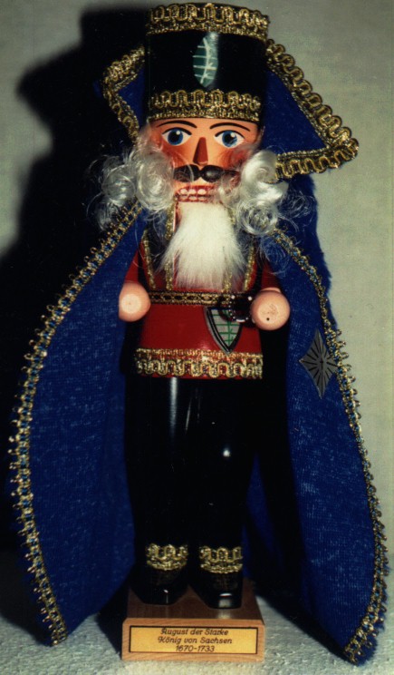 Die Herstellung von Schnitzarbeiten bot sich in waldreichen Gegenden an. Ursprünglich ist die Herstellung der Nussknacker allerdings nicht im Erzgebirge zu suchen. Während der Wintermonate und in schlechten Zeiten war es die einzige Möglichkeit der Kleinbauern und Bergmännern, mit ihren Familien einen Nebenverdienst zu erreichen. Im Grödner Tal, im Berchtesgardener Land, in Tühringen und dann später im Erzgebirge, hat die Herstellung von Holzwaren und Spielzeugen eine lange Geschichte. Tiermotive bei Nussknackern finden wir besonders im Alpenraum. Verzierte, hölzerne Nusszangen kommen aus Osteuropa. Der Nussknacker in Menschengestalt, hat seinen Ursprung im Alpenraum. Der älteste erhaltene Nussknacker ist ein Bettelmönch aus dem Jahre 1591. Zwei Jahrhunderte lang wurden in dem Südtiroler Bergdorf Görden, geschnitzte Nussknackerfiguren hergestellt. Sie stellen unter anderem geschnitzte Karikaturen, z.B. Dirnen, Mönche, und Krüppel dar. Zu Beginn des 20 Jh. wurde die Produktion eingestellt. In den Nussknackern aus der Röhn finden wir geschnitzte Figuren mit freundlichen Zügen. Ein immer wiederkehrendes Motiv ist das Eichhörnchen. Daneben aber hauptsächlich die Gestalten von Soldaten, Polizisten und Königen, Förstern und anderen Amtspersonen, die so den einfachen Leuten zu Diensten sein sollten. Diese naive Form der Sozialkritik war nicht frei von Häme. Die Nussknacker, zum Beispiel Repräsentanten der Obrigkeit, mussten schließlich die ganze Adventszeit über Sklavendienste für die armen Leute leisten. Außerdem zeigten sie symbolisch, angesichts der schlechten sozialen Lage, dass es endlich galt: "harte Nüsse zu knacken"! Figürliche Nussknacker werden auch als Napoleon, Bismarck, und den heutigen Politikern gestaltet. |